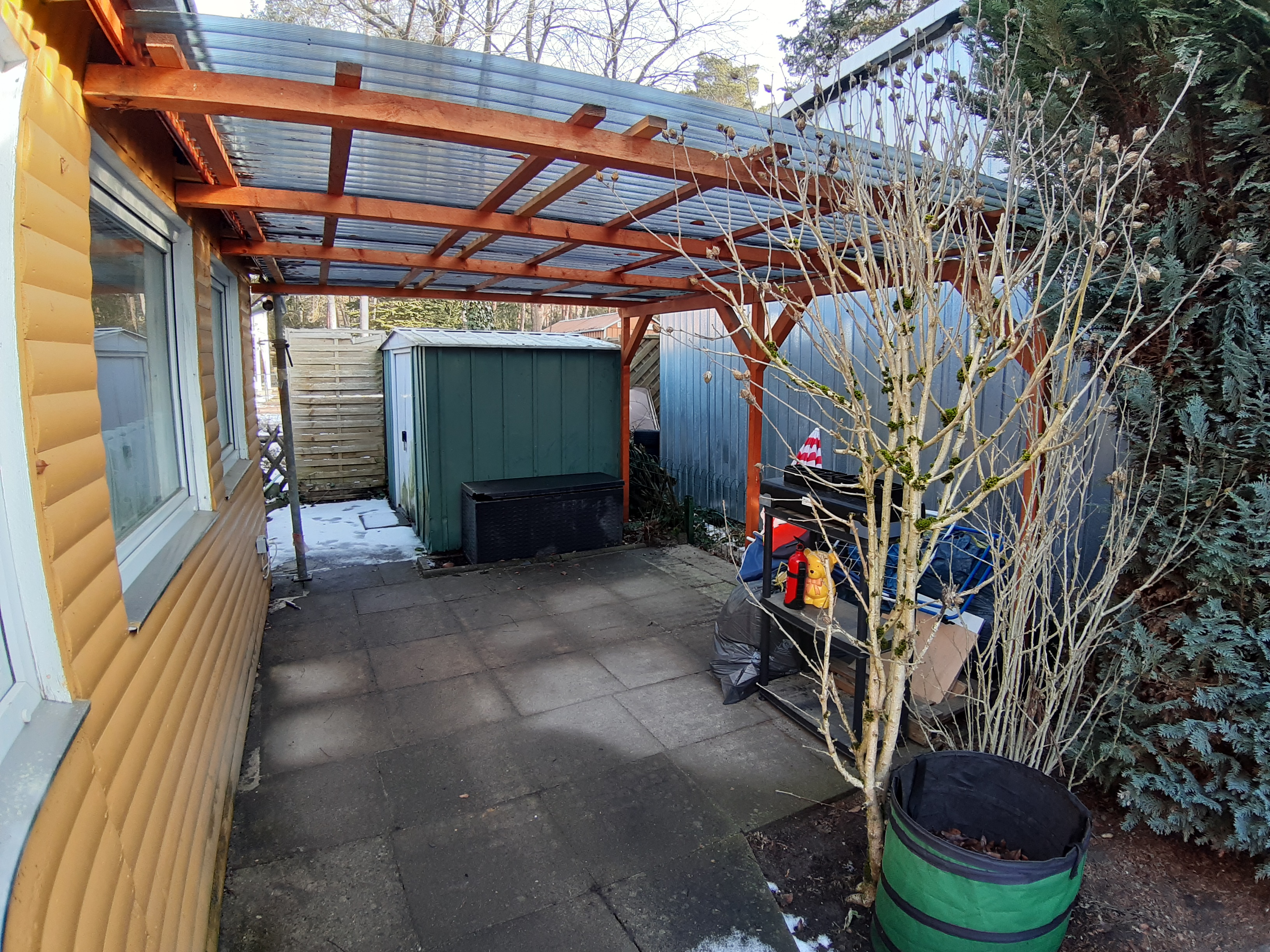 2023 wurde eine solide Überdachung im Außenbereich angebracht, welche als Unterstellplatz hervorragend geeignet ist.
